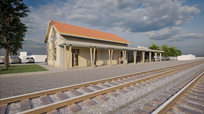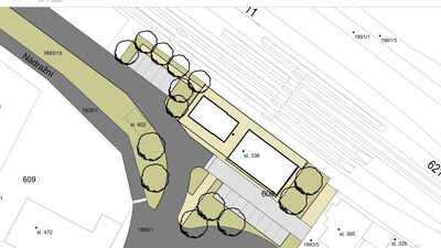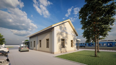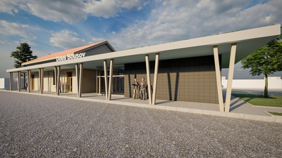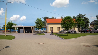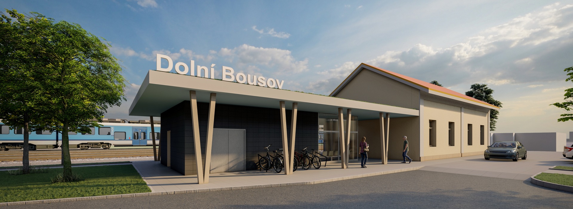 Předmětem řešení architektonické studie byla rekonstrukce výpravní budovy v ŽST Dolní Bousov. Zatímco východní část stávajícího objektu se ponechá, patrová část bude demolována a na jejím místě vznikne nové zázemí pro cestující. Novou výpravní budovu jsme se snažili koncipovat tak, aby v průhledu Nádražní ulicí tvořila dominantu a přispěla tím k lepší orientaci pěších ve městě. V rámci řešení jsme navrhli nová parkovací stání, doplnili stojany pro kola a oživili místo veřejnou zelení.