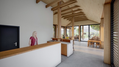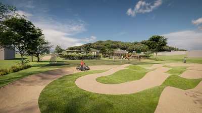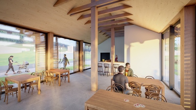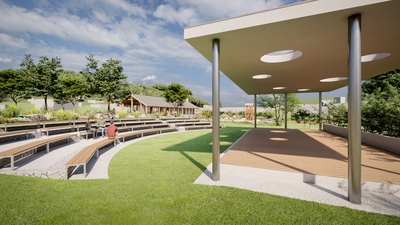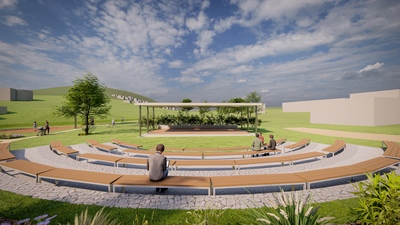 Lokalita pro novostavbu společenského centra Batňovic byla vybrána v místě, které již svým způsobem jako centrum obce funguje. Stojí zde stávající restaurace, ke které přiléhá objekt parkoviště a rozsáhlá travnatá plocha. V rámci studie jsme území přeorganizovali, aby nabízelo širší rekreační a volnočasové vyžití. Návrh uvažuje s umístěním nových sportovišť zahrnujících pumptrackovou dráhu a multifunkční hřiště. Dále bylo navrženo hlediště s pódiem, které bude sloužit pro příležitostné kulturní a společenské akce. Obsluhu areálu zajistí nová příjezdová cesta doplněná o kolmá parkovací stání.