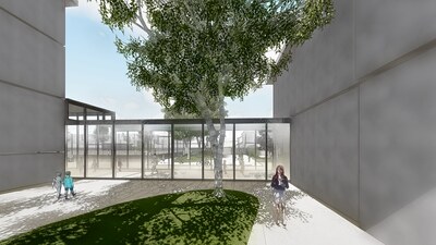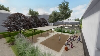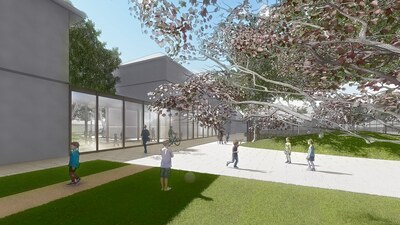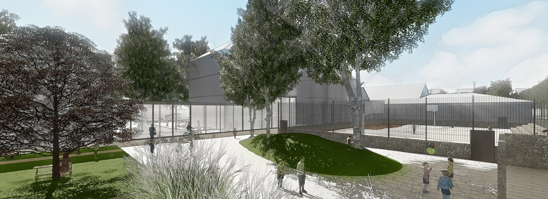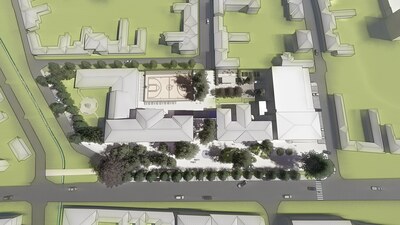 Klíčovým prvkem návrhu je zaslepení Stojanovy ulice, která v současné době rozděluje školní areál na dvě části. Jejich propojením vzniká mezi školními budovami polouzavřený školní dvůr s pestrou škálu využití – od multifunkčního hřiště a venkovní učebny až po odpočinkovou zónu a školní záhony. Prostranství při ul. Náměstí Hrdinů je od školního dvora odděleno proskleným průchozím krčkem.