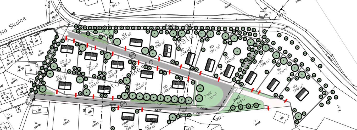 V klidném území Skalka na okraji města Náchod jsme zpracovali členění lokality na pozemky pro rodinné domy. Vytvořená studie o budoucím uspořádání území zahrnuje umístění 24 rodinných domů profitujících z atraktivního výhledu do údolí řeky Metuje. Dále jsou vymezena nová veřejná prostranství a uliční síť. Taktéž nebyl opomenut koncept technické infrastruktury a klidné dopravy. Realizací zástavby dojde k dokončení rozvoje této oblasti a vytvoření příjemného prostředí pro život.