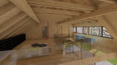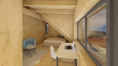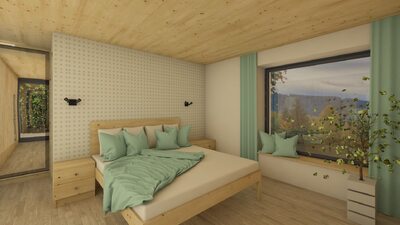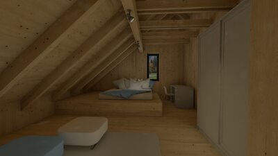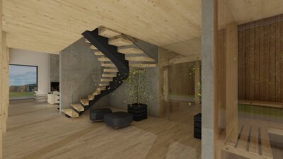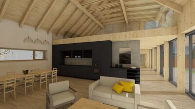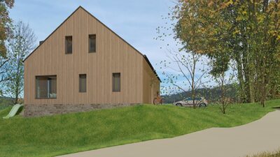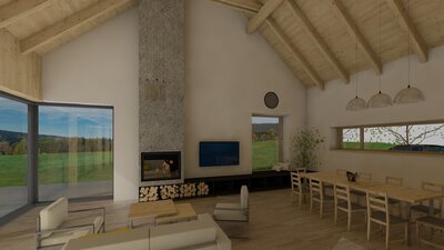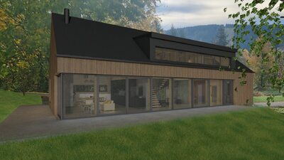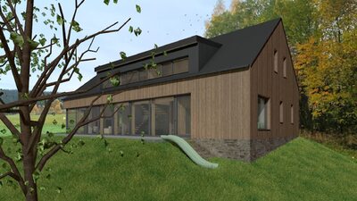 Město Deštné v Orlických horách patří mezi oblíbená rekreační místa, která lákají návštěvníky především v zimní sezóně. Navrhovaný objekt bude sloužit pro soukromou rekreaci a příležitostně také pro konání firemních školení a seminářů. Stavba je situována na východní části pozemku a má jednoduchý obdélníkový půdorys. Jednopodlažní dům s podkrovím je zastřešen sedlovou střechou doplněnou o vikýř, orientovaný na západ do soukromé zahrady. V dálkových pohledech se však neuplatňuje, takže neruší celkový charakter území. Celkové řešení respektuje okolní zástavbu i požadavky CHKO na tvarosloví, čímž stavba přirozeně zapadá do svého prostředí.