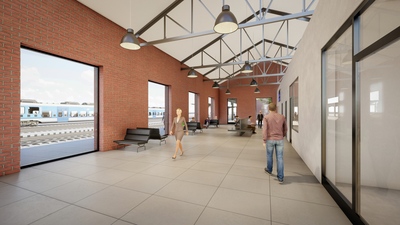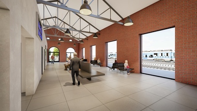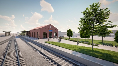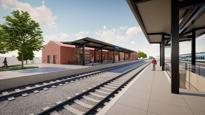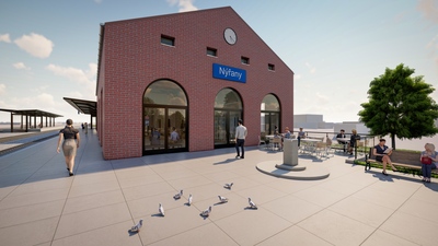 Železniční stanice v Nýřanech, ležící nedaleko Plzně, získá novou podobu. Architektonický návrh vychází z charakteru okolí a navazuje na budovy lemující kolejiště. Komplex tvoří dvě samostatné části. Dominantou je převýšená hala pro cestující se sedlovou střechou, která odkazuje na tradici historických nádraží a nejvíce vynikne na vstupním průčelí. Uvnitř se nachází odbavovací hala, prodejna jízdenek, toalety i komerční prostor s přímým napojením na venkovní terasu v přednádražním prostoru. Druhý objekt je určen pro zázemí provozu dráhy. Nové nádraží tak propojuje funkčnost, komfort pro cestující i respekt k historii místa.