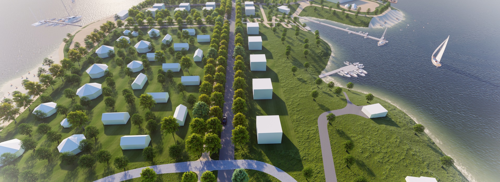 Pro obce Nahořany a Velká Jesenice jsme zpracovávali studii budoucího rozvoje poloostrova Rozkoš. Koncept zahrnuje jednak umístění ploch pro sport, které jsou vymezeny ve východní nejatraktivnější části lokality. Dále je počítáno s místem pro restauraci, která bude těžit z polohy v místě panoramatického rozhledu. Přilehlé skalnaté břehy budou doplněny visutými lávkami a poblíž bude situována rozhledna. Veškeré břehy podél poloostrova budou zpřístupněny a doplněny pěší promenádou propojující jednotlivé pláže, vyhlídková místa, areál venkovního hlediště s pódiem na vodě, mola a přístaviště. V území jsme dále navrhli různé formy ubytování – od kempů až po bydlení v korunách stromů. Realizace rozvoje podle navrženého konceptu může proměnit poloostrov v jedno z hlavních lákadel východočeského regionu.