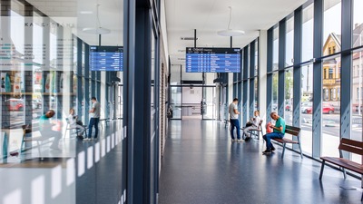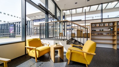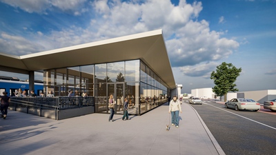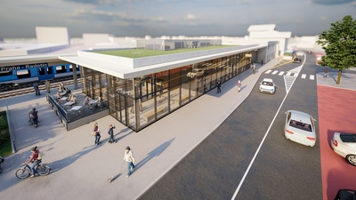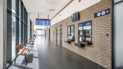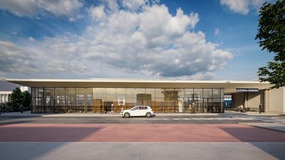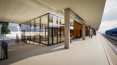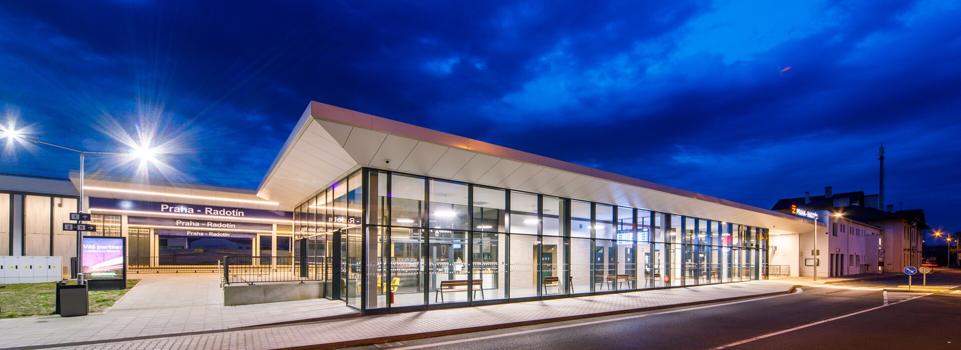 Součástí modernizace nádraží v Radotíně je i nová výpravní budova, kterou jsme navrhli. Jednopodlažní prosklený objekt nabídne cestujícím vše potřebné – od pokladen a odbavovací haly až po kavárnu a trafiku. Architektonicky navazuje na původní historickou budovu, která v budoucnu najde nové využití jako služebna městské policie. Díky proměně dosud nevyužité plochy tak vznikne přehledný, světlý a živý prostor, kde se bude nejen cestovat, ale i příjemně trávit čas.